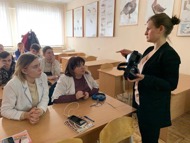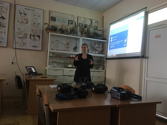 Студенти отримали можливість побувати на виробництві та в головному офісі компанії – віртуально, завдяки віар-окулярам. Студенти побували на полях підприємства, заводі з виробництва комбікормів, в інкубаторії, на виробничих майданчиках з вирощування курчат-бройлерів та у забійному цеху.
