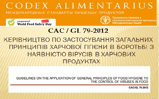 Перелік галузей критичної інфраструктури під час пандемії COVID-19Було розглянуто стан міжнародного регулювання питань управління ризиками щодо безпечності харчових продуктів в результаті наявності вірусів в харчових продуктах, а саме стандарт Комісії Кодекс Аліментаріус CAC / GL 79-2012 КЕРІВНИЦТВО ПО ЗАСТОСУВАННЮ ЗАГАЛЬНИХ ПРИНЦИПІВ ХАРЧОВОЇ ГІГІЄНИ В БОРОТЬБІ З НАЯВНІСТЮ ВІРУСІВ В ХАРЧОВИХ ПРОДУКТАХ, визначено види вірусних інфекцій, джерелами яких можуть слугувати харчові продукти, джерела поширення вірусів та наслідки для здоров’я людини.