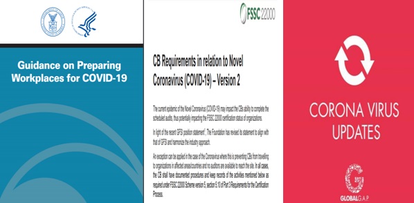 Крім того, нині всі організації різного рівня міжнародні, регіональні, національні які розробляють стандарти та схеми сертифікації систем управління безпечністю харчових продуктів розробили рекомендації щодо попередження поширення COVIR-19 для операторів ринку харчових продуктів та сертифікаційних органів.