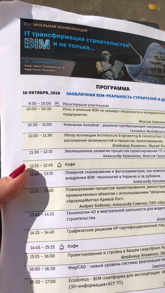 16 жовтня 2019 року студенти ІІ курсу 1 групи факультету землевпорядкування разом з наставником Кустовською О.В., відвідали цікавий і пізнавальний захід – практичну будівельну конференцію «Заоблачная BIM – реальность строителей и делоперов» організовану компанією AUTODESK та акціонерним товариством АРКАДА.