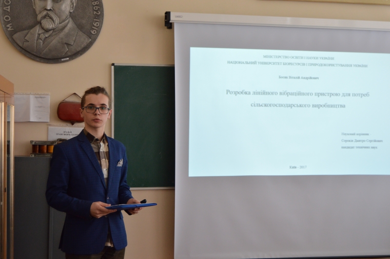 2. «Розробка лінійного вібраційного пристрою для потреб сільськогосподарського виробництва» – автор Босик В.А., студент третього курсу (науковий керівник к.т.н., Сорокін Д.С.).