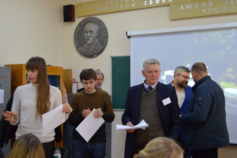 Призові місця розподілялись за результатами виступів на підсумковій науково-практичній конференції, дискусій серед учасників та незалежного оцінювання з боку членів галузевої комісії, до складу якої входили провідні фахівці України зі спеціальності «Електричні машини та апарати», у тому числі викладачі кафедри електричних машин і експлуатації електрообладнання НУБіП України - професор Заблодський М.М. та старший викладач Сорокін Д.С.