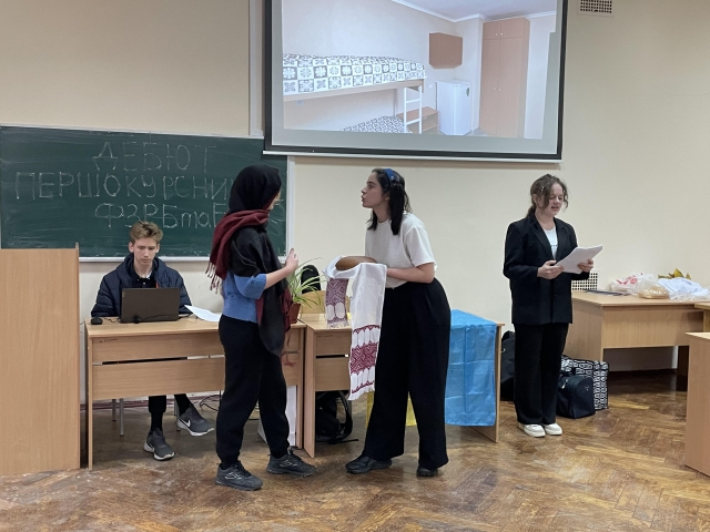 В цьому році методом жеребкування факультету випала тема, яка пов’язує три слова «Мама, паляниця і гуртожиток». Першокурсники під керівництвом студкураторів зробили повноцінний виступ, який поєднує у собі ці прекрасні слова.