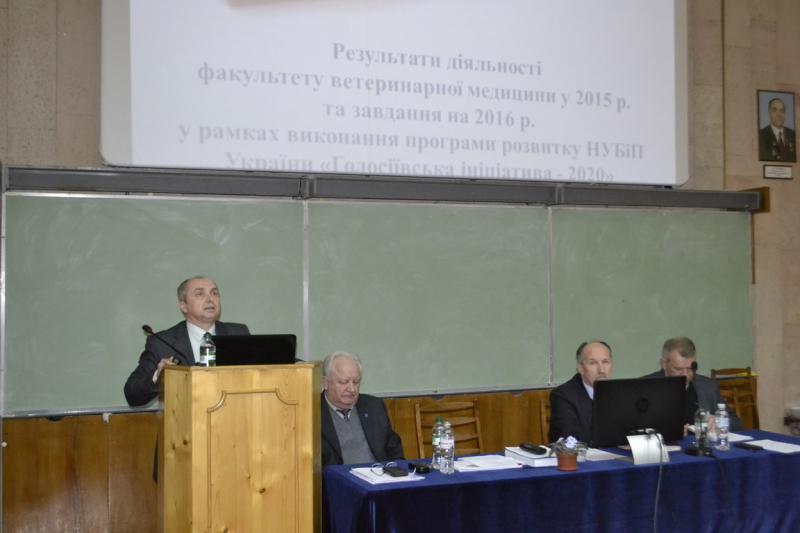 5 лютого за участю проректора з навчально-виховної роботи Кваші Сергія Миколайовича відбулися збори трудового колективу факультету ветеринарної медицини, на яких заслухали звіт декана факультету М.І. Цвіліховського «Про результати діяльності факультету ветеринарної медицини у 2015 році та завдання на 2016 рік у рамках виконання програми розвитку НУБіП України «Голосіївська ініціатива − 2020».