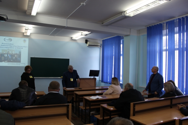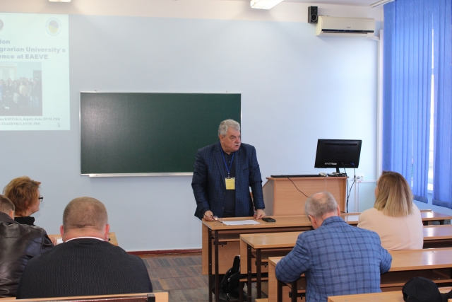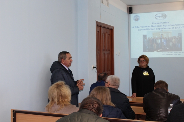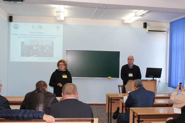Завідувач кафедри епізоотології та інфекційних хвороб Білоцерківського НАУ Тарас Царенко ознайомив присутніх з основними етапами процесу проходження Євроакредитації факультетом ветеринарної медицини Білоцерківського НАУ.