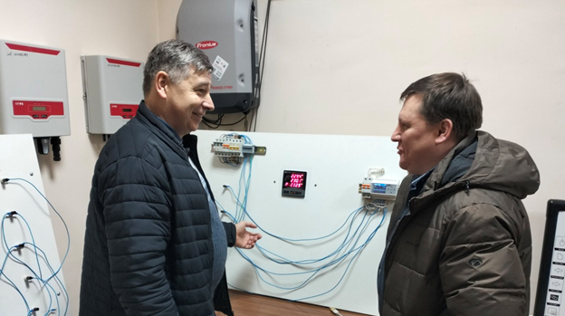 Так, завідувач кафедри електричних станцій та систем, професор Вячеслав Комар окремо зупинився на особливостях підготовки здобувачів ОС «Бакалавр» за нещодавно відкритою спеціальністю 145 «Відновлювальні джерела енергії та гідроенергетика». Гостям було продемонстровано нову навчальну лабораторію сонячної енергетики, систем акумулювання енергії та прогнозування виробітку, яка ось уже два роки функціонує при кафедрі. Обладнання лабораторії дозволяє проводити наукові дослідження щодо сонячних фотоелектрияних модулей, панелей, та інших сонячних технологій з метою покращення їхньої ефективності та надійності.