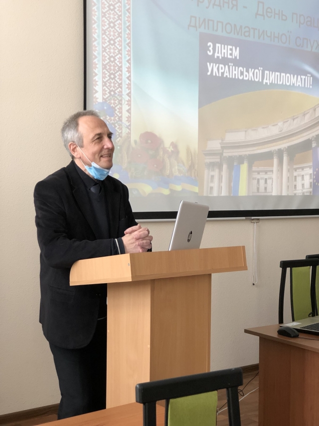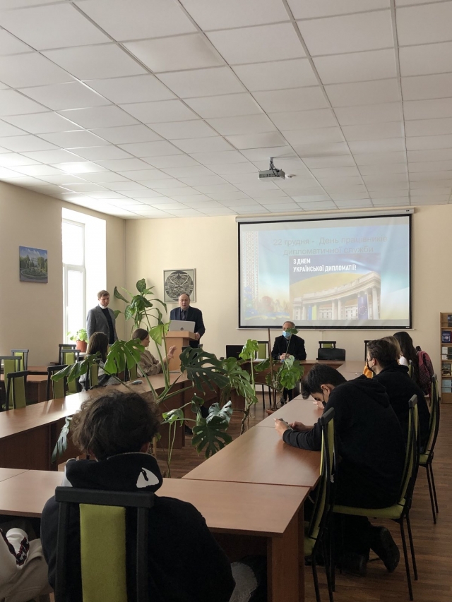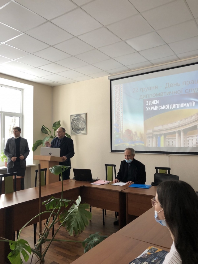 Сьогодні відбулась зустріч зі студентами 1 та 2 курсів спеціальності «Міжнародні відносини, суспільні комунікації та регіональні студії» науково-педагогічних працівників кафедр міжнародних відносини та суспільних дисциплін і філософії та міжнародної комунікації гуманітарно-педагогічного факультету НУБІП України, присвячена Дню працівника дипломатичної служби, котрий святкувався 22 грудня.