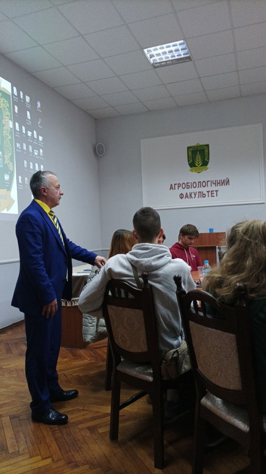 З промовою виступили декан Агробіологічного факультету – Оксана Тонха та професор, член-кореспондент НААН України - Семен Танчик. Вони представляли весь педагогічний склад факультету. Люди, які вже не перший рік зустрічають абітурієнтів, а за певний час випускають у світ неймовірних спеціалістів своєї справи. Професори, які знають про наш факультет все і трохи більше. Розказали студентам про те, хто такі агрономи і садівники та наскільки велика їх роль у суспільстві, бо ж сільське господарство – годує!