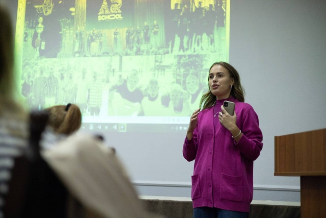 Також слово надали голові Сенату студентської організації агробіологічного факультету – Любові Тхорик. Вона розказала про студентське самоврядування університету, структуру ССО АБФ та про активне, цікаве і захоплююче проведення часу, яке чекає на наших майбутніх студентів. Також голова сенату згадала те, наскільки згуртованим є студентство факультету. Хорошим прикладом цьому є наш «Ультрас» та його запальні вболівання до перемоги. Своїми досягненнями вона продемонструвала рівень знань та вмінь студентів АБФ. Вони часто їздять закордон, представляючи навчальний заклад, перемагають у спортивних змаганнях та є заохоченими до активної участі в житті університету!
