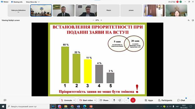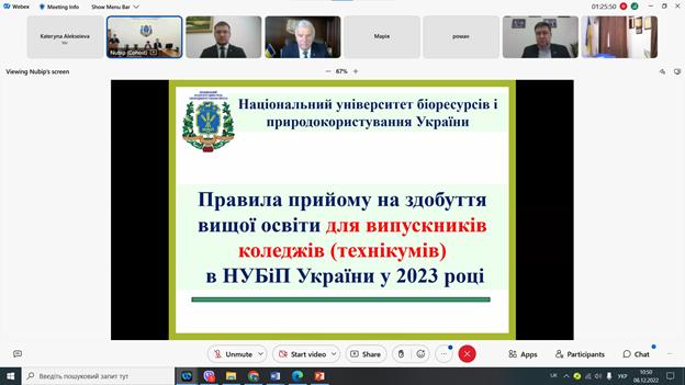 Координуючи захід, директор ННЦ Виховної роботи та соціального розвитку Сергій Михнюк, передав слово відповідальному секретарю Приймальної комісії НУБіП України, кандидату сільськогосподарських наук Сергію Ковалевському, який доступно роз’яснив процедуру вступу до університету на різні спеціальності.