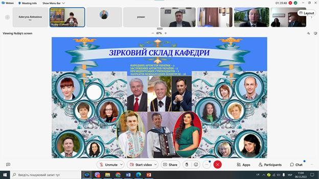 Завідувач кафедри культурології, доктор філософських наук Ірина Майданюк назвала свою кафедру «осередком духовності» та «храмом мистецтв» НУБіП України та розповіла про активну роботу з залучення студентів до мистецьких колективів, творчих гуртків, різноманітних культурних заходів.