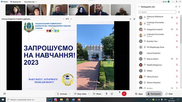 Незважаючи на військовий стан, НУБіП України знову гостинно відкриває двері для майбутніх вступників. З метою залучення якомога більшої кількості учасників Дні відкритих дверей в нашому університеті традиційно проводяться у два етапи – спершу до заходу долучаються випускники фахових коледжів, а потім окремо організовується зустріч з випускниками шкіл. Так, 08 грудня 2022 року випускники фахових коледжів та їхні батьки мали можливість долучитися до Днів відкритих дверей спочатку на загальноуніверситетському рівні для отримання інформації про університет в цілому, а потім на рівні факультету аграрного менеджменту.