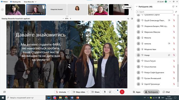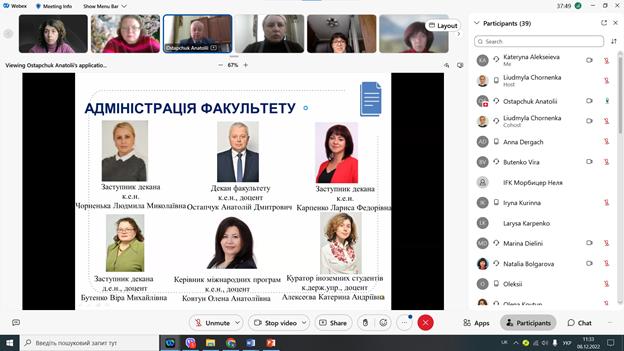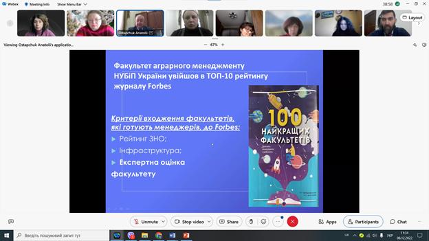 Після завершення загальноуніверситетського інформаційного блоку вступники, які мають намір вступати на факультет аграрного менеджменту, долучились до заходу на нашому факультеті. Декан факультету аграрного менеджменту кандидат економічних наук, доцент Анатолій Остапчук привітав всіх присутніх у «віртуальній аудиторії» ввіреного йому факультету.