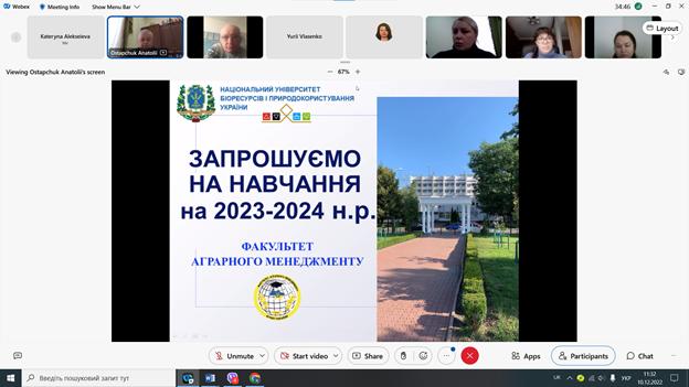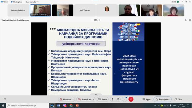 Презентуючи факультет аграрного менеджменту, Анатолій Остапчук представив команду деканату та завідувачів кафедр факультету, зазначив, що завдяки плідній роботі всього колективу факультет посів десяту позицію у рейтингу журналу Forbes як один з найкращих факультетів з підготовки за спеціальністю «Менеджмент» в Україні. Декан розповів, як організовано навчальний процес на факультеті, розповів про основні переваги навчання тут та акцентував увагу на потужній міжнародній діяльності, яка здійснюється на постійній основі.