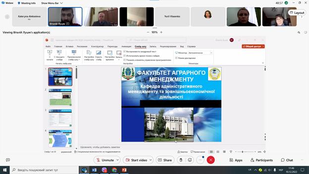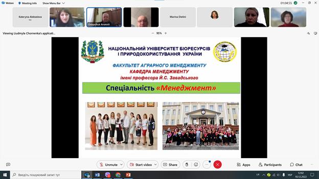 Завідувачі кафедр факультету аграрного менеджменту по черзі представили свої кафедри та розповіли про досягнення. Так, завідувач кафедри адміністративного менеджменту та зовнішньо-економічної діяльності Віталій Луцяк розповів про роботу своєї кафедри та сконцентрував увагу присутніх на роботі лабораторії бізнес-аналітики. В.о. завідувача кафедри виробничого та інвестиційного менеджменту Марина Дєліні зазначила, що створення кафедри було відповіддю на потреби бізнес-середовища у проектних менеджерах та окреслила основні здобутки. Микола Талавиря, завідувач кафедри економічної теорії, розповів історію створення кафедри, а від імені кафедри менеджменту ім. Й.С. Завадського виступила Ольга Гогуля, поінформувавши щодо основних напрямків діяльності. Про роботу кафедри маркетингу доповів в.о. завідувача кафедри маркетингу Олександр Луцій.