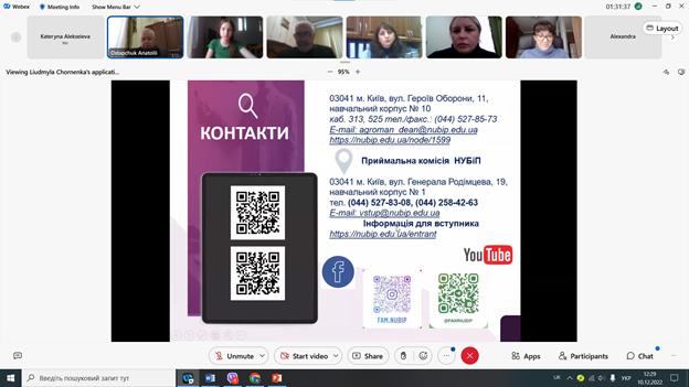 Завершуючи Дні відкритих дверей, декан факультету аграрного менеджменту Анатолій Остапчук, побажав всім присутнім мирного неба та здоров’я, міцності, згуртованості, успішного завершення навчання в школах та вступу до нашого славетного університету! Декан закликав вступників використати можливість і долучитися до навчання на нашому факультеті. Подякувавши за увагу, Анатолій Остапчук висловив сподівання щодо зустрічі в приймальній комісії влітку 2023 року та порадив занотувати контакти для подальшого спілкування та супроводу під час вступу.