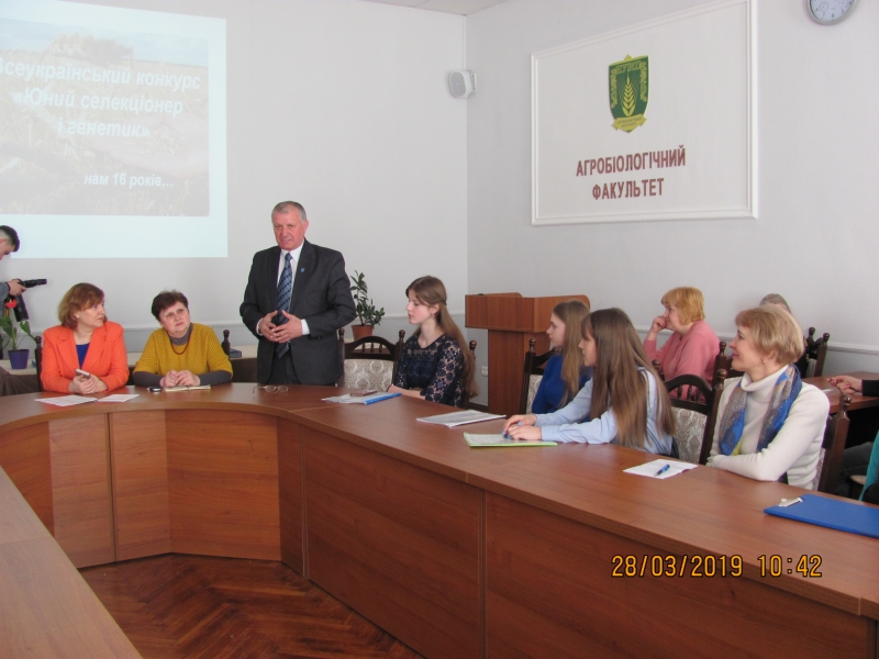 28 березня агробіологічний факультет НУБіП України гостинно приймав учнівську молодь, батьків та вчителів на черговому «Дні відкритих дверей». Наймасовішою групою, яка прийняла участь у «Дні відкритих дверей», були учасники Всеукраїнського конкурсу «Юний селекціонер і генетик» організатором якого був Національний еколого-натуралістичний центр учнівської молоді МОН України спільно з кафедрою генетики, селекції і насінництва ім. проф. М.О. Зеленського агробіологічного факультету. З вітальними словами до присутніх звернувся ректор університету Станіслав Ніколаєнко, який відмітив, що агробіологічний факультет є одним із провідних факультетів університету, а також серед агрономічних факультетів аграрних вузів України. Студенти мають можливість отримати подвійний диплом, і проходити практики за кордоном. В університеті працює велика кількість спортивних секцій та гуртків,