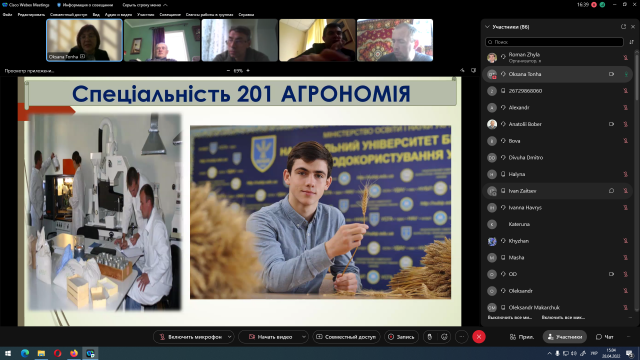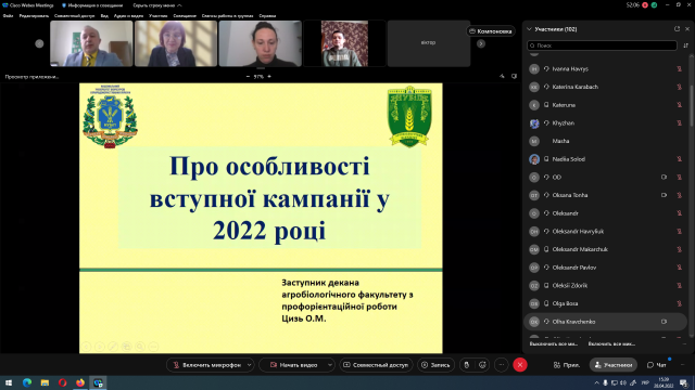 Традиційним заходом у Національному університеті біоресурсів і природокористування України стало проведення весняного Дня відкритих дверей. Саме зараз, коли випускники зважують усі «за» і «проти» вступу у той чи інший ЗВО, на ту чи іншу спеціальність на часі поспілкуватися з ними у довірливій атмосфері, показати переваги навчання у нашому університеті та й просто проконсультувати з питань складання НМТ та вступу. Особливо гостро це питання постало у воєнний час, коли кардинально змінюються умови вступу, а значна частина випускників перебувають у дещо розгубленому стані, оскільки, як і всі громадяни України, стикнулися з безпрецедентною агресією Росії і абсолютно незвичною і неочікуваною для себе ситуацією. На агробіологічному факультеті онлайн День відкритих дверей зібрав понад 100 учасників: випускників шкіл та коледжів, батьків та усіх зацікавлених у вступі на спеціальності 201 Агрономія і 203 Садівництво та виноградарство.