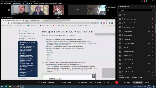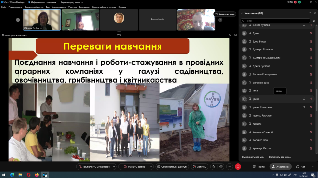 Заступник декана з міжнародної діяльності Ольга Кравченко детально розповіла про перспективи участі студентів у міжнародних програмах, закцентувавши увагу, що студенти нашого університету позитивно вирізняються своїм високим рівнем підготовки за участі у міжнародних конкурсах, у яких їй довелося приймати участь, як члену журі. Також йшлося про групи з вивчення предметів англійською мовою на факультеті, навчання у яких кардинально підвищує фаховий рівень випускників, оскільки знання іноземної мови висококваліфікованим агрономом чи плодоовочівником – практично гарантія успішної професійної кар’єри.
