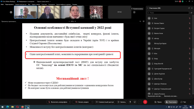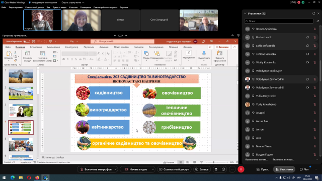 Заключним виступом Дня відкритих дверей була презентація доцента кафедри овочівництва і закритого ґрунту Олександра Цизя, у якій він розповів про особливості вступу під час воєнного стану у 2022 році.