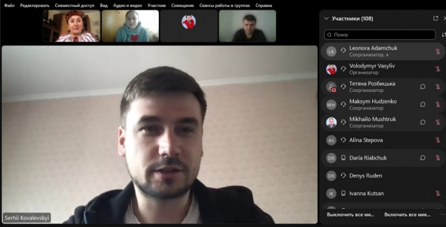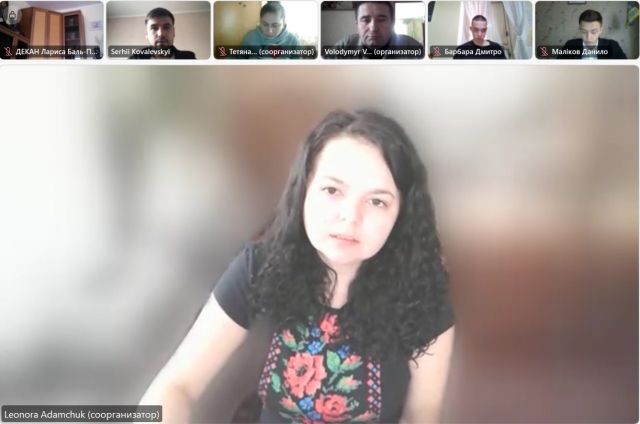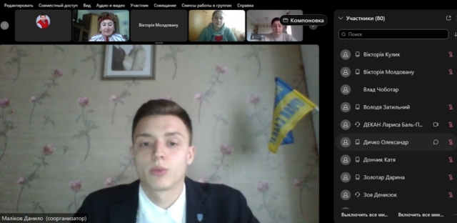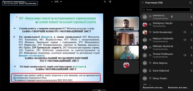 Голова студентської організації факультету, студент 4 курсу Данило Маліков розповів присутнім про студентське життя в університеті, про роботу студентської організації, дозвілля, військову кафедру, автошколу про все, що було показано в попередньо представлених презентаціях, запросив абітурієнтів обов’язково вступати лише на наш факультет, приєднатися до них в групу і приймати участь у вебінарах, конференціях та інших активних заходах.