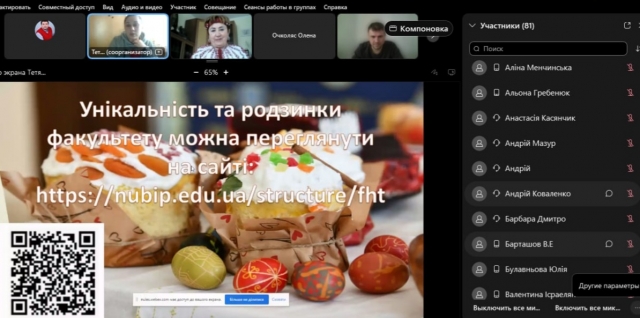 Факультет харчових технологій та управління якістю продукції АПК Національного університету біоресурсів та природокористування України, традиційно, як і було заплановано, 20 квітня 2022 року провів Онлайн-день відкритих дверей для школярів, студентів технікумів, коледжів та батьків, з використанням платформи Webex, щоб гості могли отримати якомога більше інформації про спеціальності, освітні програми, стратегію університету, умови та матеріально-технічне забезпечення, можливості для студентів та дозвілля, яке допоможе розвивати світогляд і створювати найміцніші дружні зв’язки, зорієнтуватися у розмаїтті спеціальностей, вибрати найбільш актуальну і потрібну професію, отримати поради та консультації фахових викладачів-практиків, зануритися у справжнє студентське життя навіть в умовах карантину, війни.