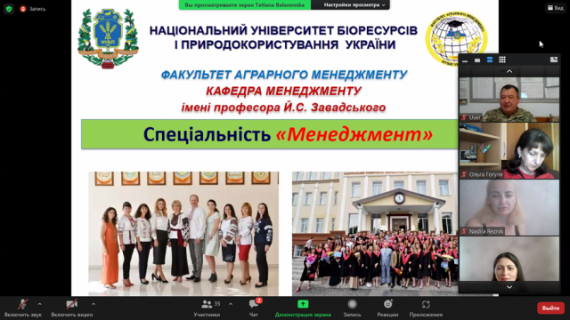 27 квітня 2022 року кафедра менеджменту ім. проф. Й. С. Завадського Національного університету біоресурсів і природокористування України провела День відкритих дверей у форматі онлайн для випускників шкіл, гімназій, ліцеїв, технікумів і коледжів.