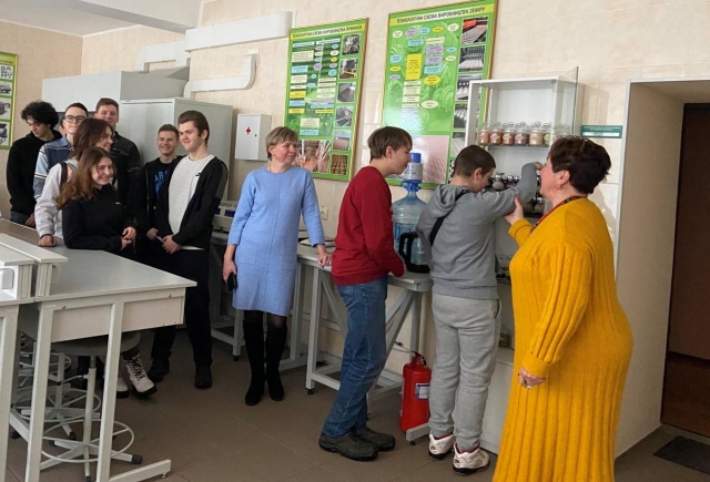Заступник декана Наталія Слободянюк охоче провела екскурсію факультетом, представила досить потужні лабораторії факультету, де студенти на високому рівні можуть проводити не лише заняття, навчаючись на бакалавра, але й виконувати свої наукові роботи, наукові дослідження, навчаючись в магістратурі, які неможливо провести в жодному університеті нашої країни. Маючи значний досвід роботи, Наталія Михайлівна відмітила, що саме великі можливості факультету дають високі знання студентам, надихають працювати саме в НУБіП, на факультеті харчових технологій та управління якістю продукції АПК.