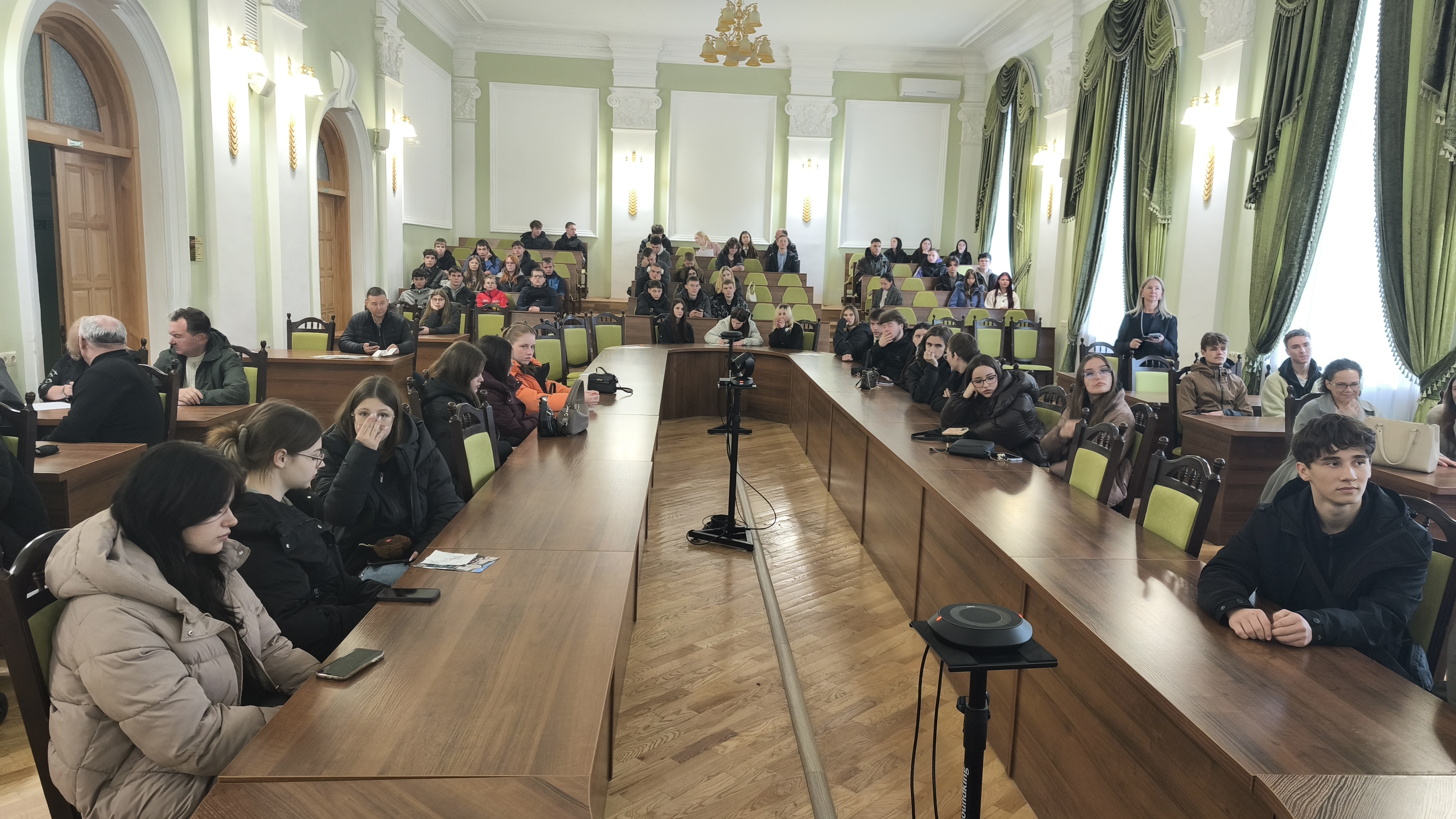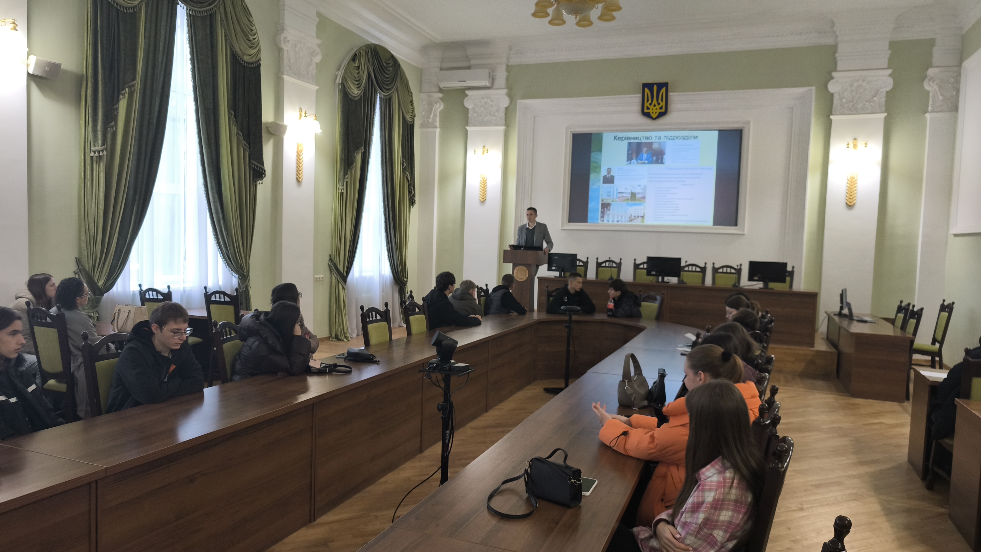 В актовій залі університету з вітальним словом до учасників зустрічі виступив ректор університету Вадим ТКАЧУК, який розповів про можливості навчання та розвитку студентської молоді.