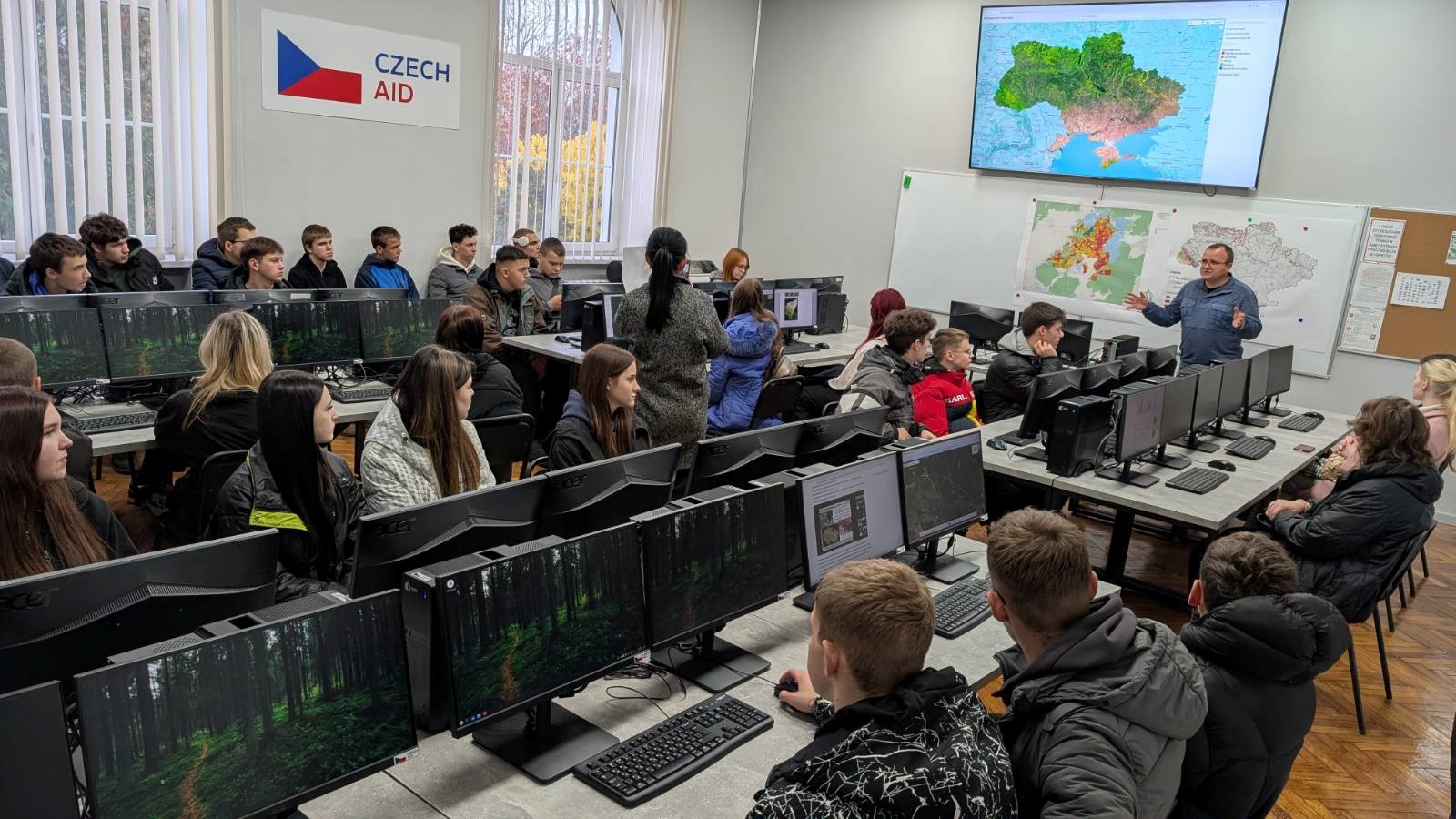 Значна частина зустрічі була проведена в аудиторіях навчального корпусу №1. У навчальній лабораторії Дистанційного моніторингу лісів під час Дня відкритих дверей Віктор МИРОНЮК продемонстрував гостям сучасні технології вивчення лісів із використанням супутникових знімків. Лабораторія створена за підтримки Чеської агенції розвитку та оснащена відповідно до новітніх вимог дистанційного моніторингу. Тут майбутні студенти побачили, як за допомогою відкритих супутникових даних можна досліджувати стан і зміни лісів, створювати тематичні карти та навіть готувати їх до друку. Разом із чеськими колегами розроблено навчальний курс, який навчає працювати з відкритими джерелами даних і спеціальними програмами для моніторингу лісів. Такі заняття показують, що сучасні технології – це не лише про науку, а й про захопливі можливості для майбутньої професії!