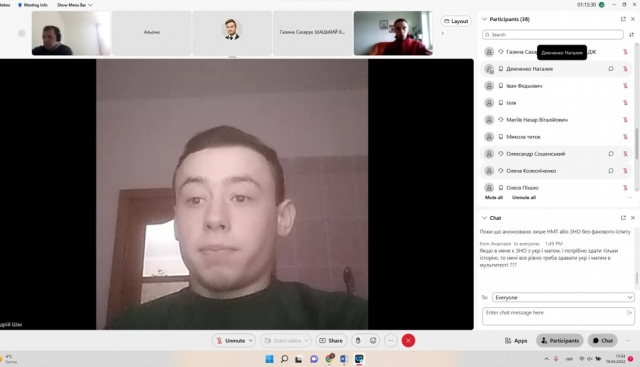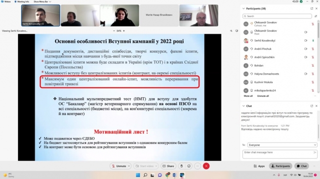 Досить цікавою була презентація відповідального секретаря приймальної комісії Сергія Ковалевського, який детально доповів про всі особливості вступної компанії 2022 року. Було проаналізовано написання мотиваційного листа та Національного мультипредметного тесту (НМТ), який буде вміщувати знання з української мови, математики та історії України. Чимало питань було задано відповідальному секретарю, оскільки цьогорічна вступна компанія буде проводитися у складних умовах війни та матиме свої особливості. Звісно, що не всі деталі правил прийому відомі станом на сьогодні, але з майбутніми абітурієнтами домовлено про наступні зустрічі, у яких їх буде про це проінформовано.