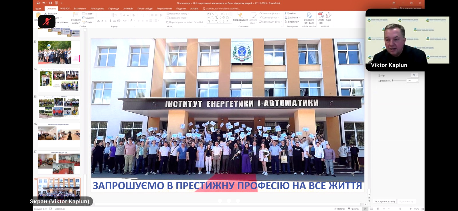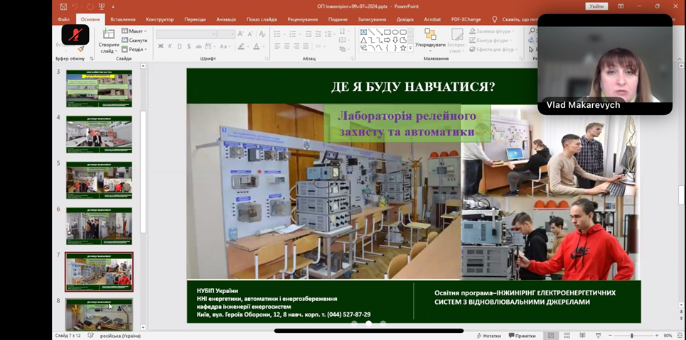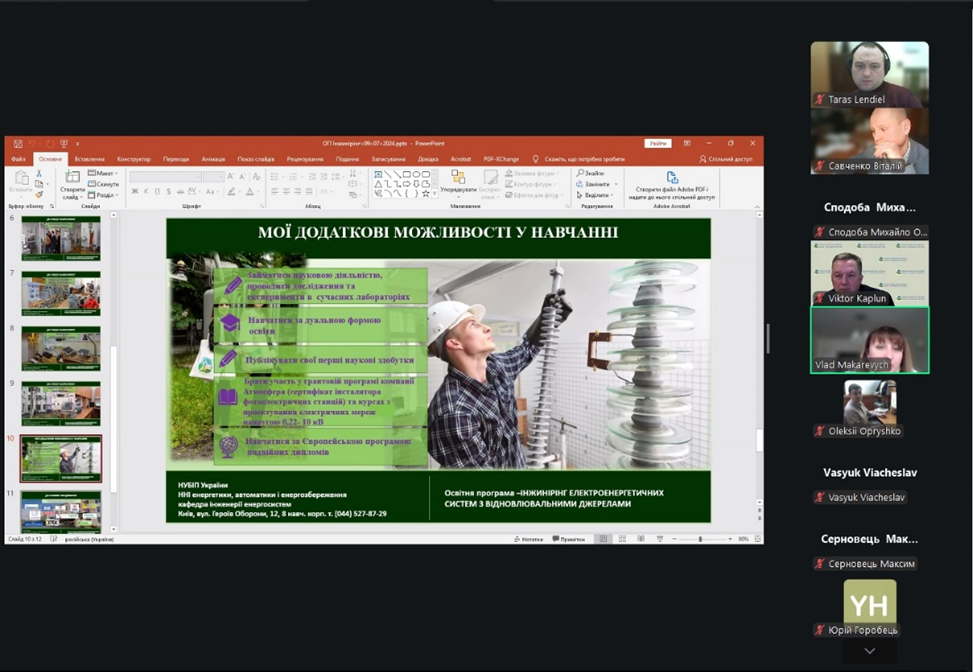 У межах серії Днів відкритих дверей, які традиційно проводяться в очному форматі, цього разу Навчально-науковий інститут енергетики, автоматики і енергозбереження НУБіП України організував захід у дистанційному режимі. В умовах сучасних викликів для енергетичної системи України, зокрема пов’язаних із масованими атаками на енергетичну інфраструктуру, перебоями з електропостачанням та потребою у відновленні енергетичних об’єктів, підготовка кваліфікованих інженерних кадрів набуває особливої актуальності. Онлайн-формат дозволив залучити майбутніх вступників із різних регіонів України та забезпечити широкий доступ до актуальної інформації про інженерну освіту й освітні можливості інституту.