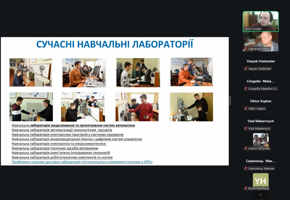 Представлення спеціальностей завершив доцент кафедри автоматики та робототехнічних систем ім. акад. І.І. Мартиненка Тарас Лендєл, який презентував освітню програму спеціальності G7 «Автоматизація, комп’ютерно-інтегровані технології та робототехніка». Під час виступу учасників ознайомили з сучасною лабораторною базою кафедри, оснащеною обладнанням для проєктування, моделювання та тестування роботизованих і автоматизованих систем.