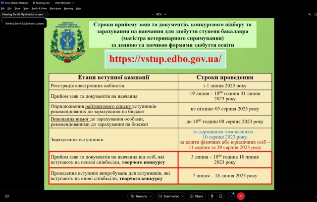 Також для випускників шкіл, які не змогли приєднатися очно, але мають бажання дізнатися більше про навчання за спеціальностями "Лісове господарство", "Садово-паркове господарство", "Деревообробні тамеблеві технології" було організовано онлайн зустріч із викладачами інституту на платформі Webex, під час якої вони мали можливість ознайомитися із основними особливостями навчання за цими спеціальностями.