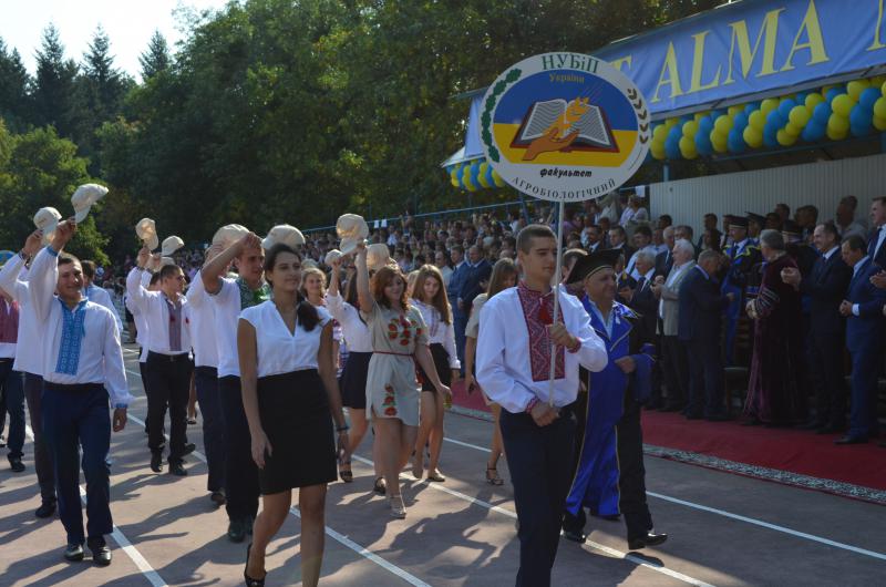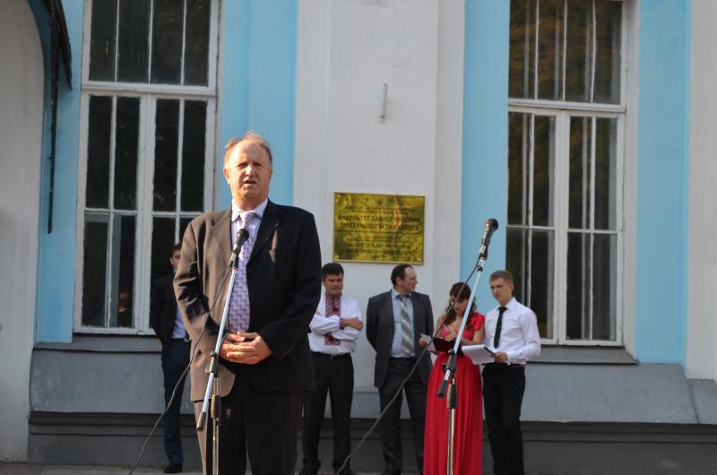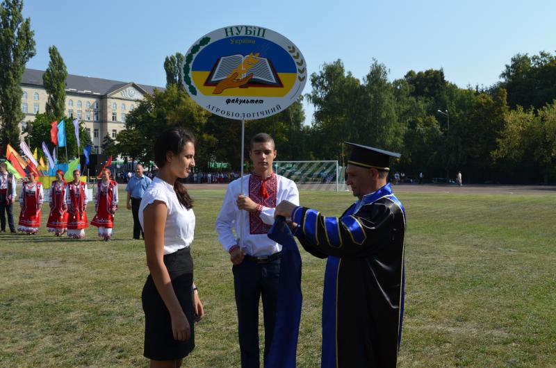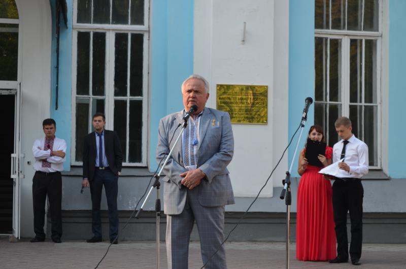 З вітальним словом до великої сім’ї агробіологічного факультету звернувся декан професор Віктор Олексійович Забалуєв. З добрими побажаннями він привітав увесь колектив із початком нового навчального року, першокурсників і випускників коледжів, які стали студентами старших курсів - із вступом до одного з найкращих університетів України, який має дослідницьке спрямування, готує висококваліфіковані кадри для наукової й виробничої сфер, співпрацює з багатьма відомими зарубіжними вищими навчальними закладами, дає змогу молодим людям стати всебічно розвиненими й успішними в житті. Декан радо привітав новачків і з входженням до нашої дружної факультетської родини, побажав успішно виконати навчальну програму, прожити хороше цікаве студентське життя й стати такими потрібними державі й людству фахівцями. У своїй промові декан зазначив, що працюємо ми з дотриманням нового закону України «Про вищу освіту», і головним завданням залишається підготовка високоякісних фахівців, збереження кращих традицій і зростання факультету в усіх видах діяльності.