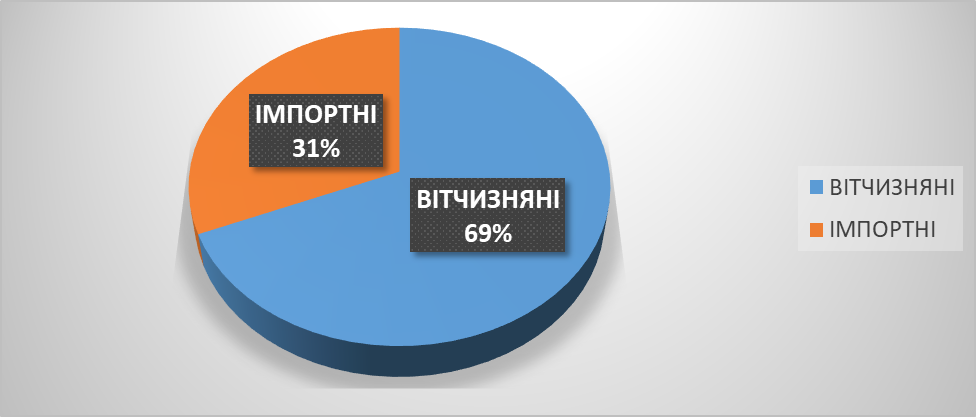 Співвідношення зареєстрованих вітчизнних та імпортних ветеринарних лікарських засобів.