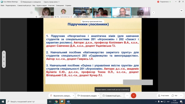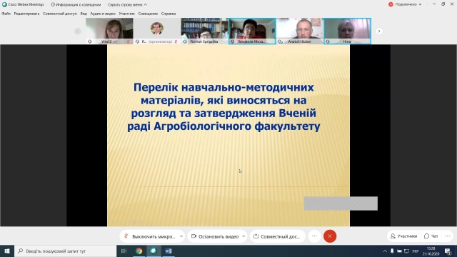 21 жовтня під головуванням декана Оксани в Тонхи відбулося онлайн засідання вченої ради агробіологічного факультету. Засідання розпочалося з приємної події, а саме з привітання завідувача кафедри рослинництва Світлани Каленської з присвоєнням звання академіка НААН України.