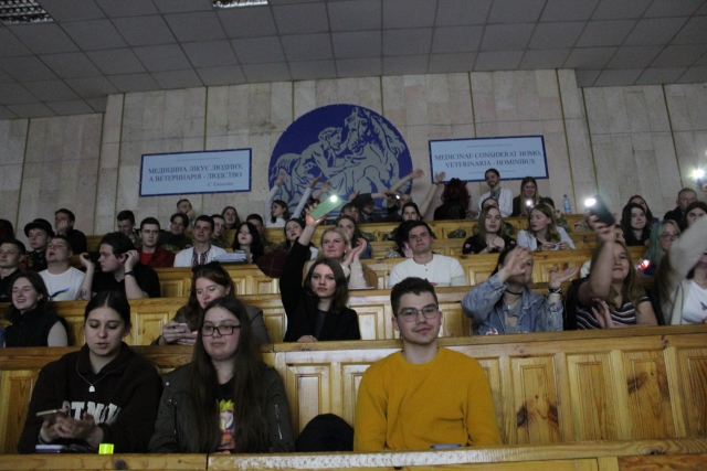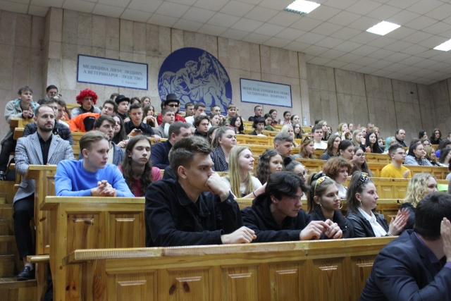 Зал був переповненим і всі з нетерпінням чекали наших дебютантів. Напередодні було проведено жеребкування і ніхто з присутніх не знав, яка група розпочне свято. Вечір відкривали чарівні ведучі, студенти факультету ветеринарної медицини Іванна Тюфанова та Артем Палійчук.