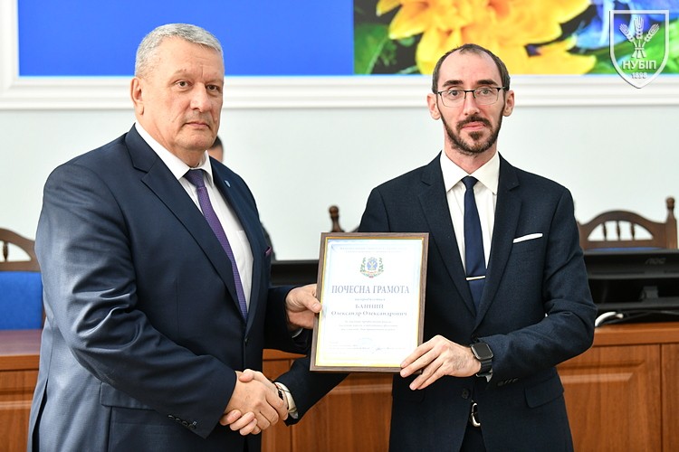 Почесною грамотою НУБіП України було відзначено доцента кафедри надійності техніки, заступника декана факультету конструювання та дизайну Олександра Банного.