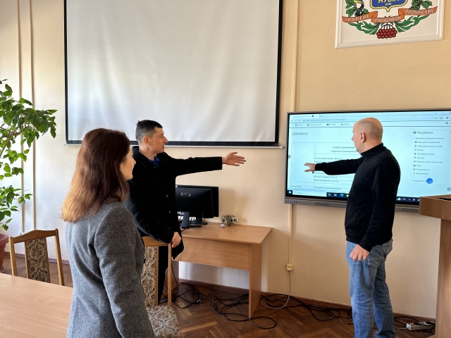 Також, Олені Колеснікові були представлені результати аналізу ЕНК, перевірка яких відбулась протягом лютого, відповідно до розпорядження декана, робочою групою у складі, відповідальної за ІКТ Віри Качур, гарантів освітніх програм Лілії Панькової та Марини Дейнеги. Віра Качур, надала аналіз головних пунктів структурно-функціональної експертизи, а гаранти відповідали за наповнення та якість поданих матеріалів. Результати перевірки показали певні недоліки: відсутність відеолекцій у більшості курсів, перевантаженість теоретичної складової, малий відсоток креативних практичних завдань. Результати перевірки обговорені на засіданні деканату та зборах з НПП.