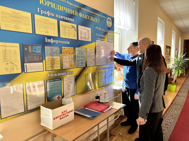 28 лютого згідно розпорядження проректора з науково-педагогічної роботи Василя Шинкарука на юридичному факультеті відбулась перевірка навчальних аудиторій та готовності кафедр факультету до офлайн навчання. Комісія у складі заступниці начальника навчального відділу з магістерських програм Олени Колеснікової, заступниці декана Олени Улютіної, завідувачів кафедр Олексія Піддубного та Віктора Ладиченка, оглянули навчальні аудиторії, укриття та готовінсть документації.