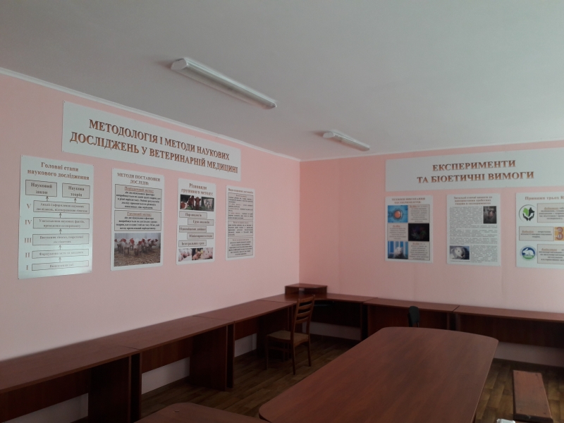 Для проведення занять із студентами ОС «Магістр» з дисципліни «Методологія і методи наукових досліджень у ветеринарній медицині» та аспірантами з дисципліни «Методика дослідницької справи у ветеринарній медицині» спеціальності 211 «Ветеринарна медицина» підготовлено ауд. 117 блок А.