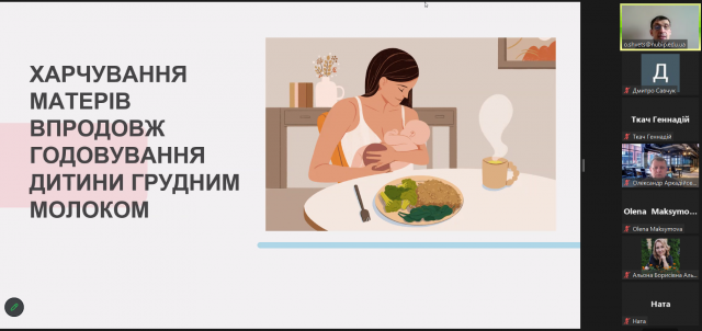 Увага слухачів була акцентована на збалансованому харчуванні та зростаючій потребі вагітних в окремих поживних речовинах – вкрай необхідних для здоров’я майбутнього малюка. Були висвітлені ключові моменти у харчуванні жінок, які годують грудьми та питання споживання ними рідини; розкрито зв'язок між споживанням певних продуктів мамою, яка годує груддю, та диспептичними симптомами у малюка.