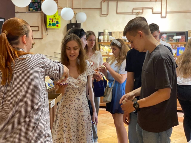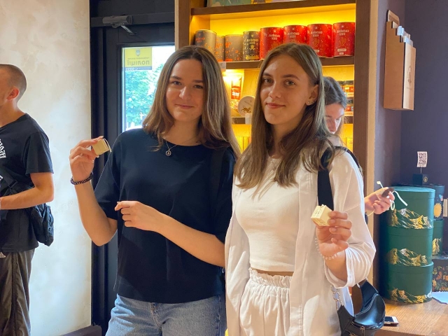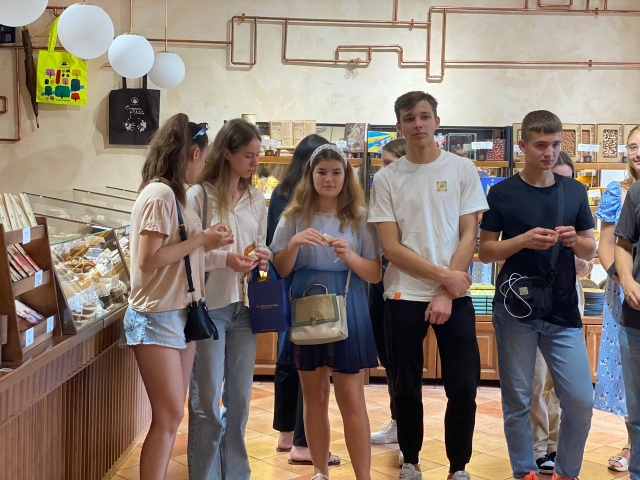 Екскурсія до львівської майстерні шоколаду – це унікальна можливість взнати таємні секрети приготування найсмачніших цукерок. От і нашим студентам досвідчений майстер-шоколатьє розповів історію появи шоколаду та розкрив таємниці корисних натуральних солодощів.