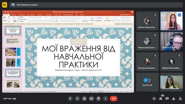 За результатами практики студентами було зібрано відповідні матеріали та оформлено звіти, які були успішно захищені за допомогою креативних презентацій.