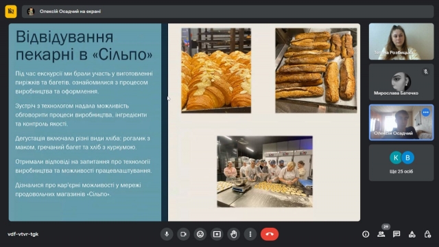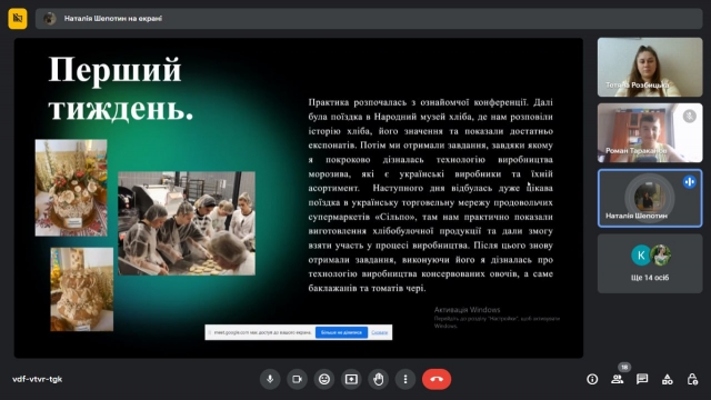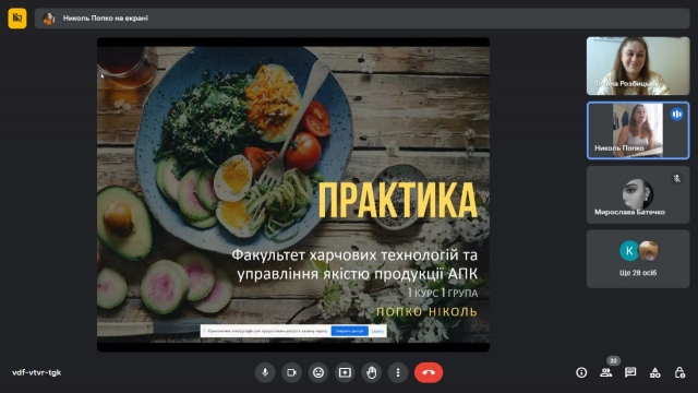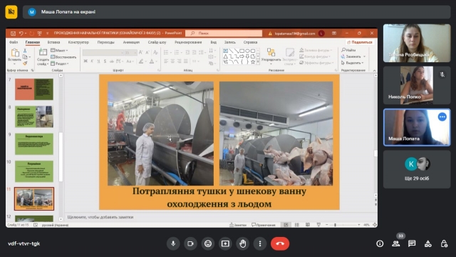 На першій зустрічі доценти кафедри технології м’ясних, рибних та морепродуктів – Олена Очколяс, Микола Ніколаєнко, Аліна Омельян та Тетяна Розбицька ознайомили студентів з існуючими практиками нашого факультету та університету, представили графік практики та надали завдання.