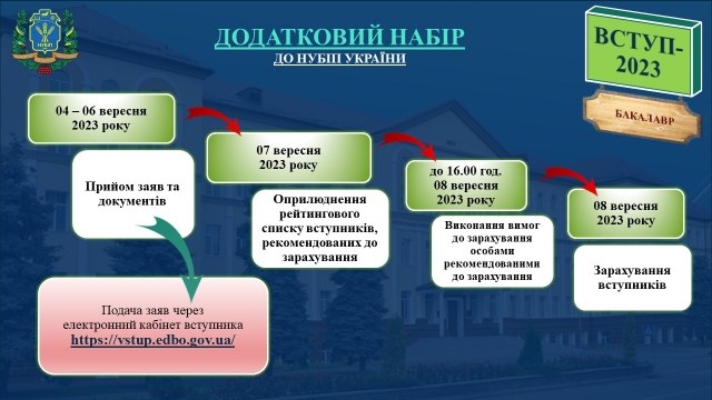 Додатковий набір на навчання: з 04 до 06 вересня прийом заяв та документів для вступу до НУБіП України!