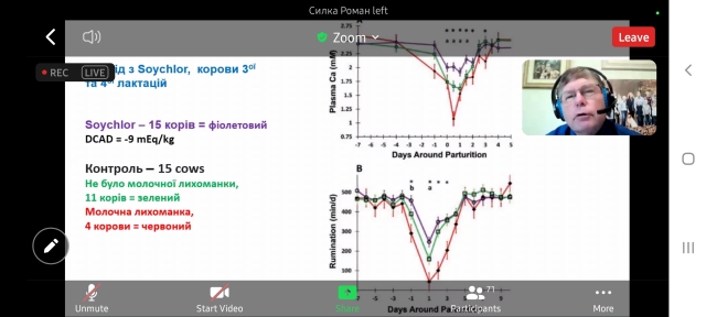 29 вересня 2022 року доцент кафедри хірургії і патофізіології ім. акад. І.О. Поваженка Юрій Харкевич відвідав вебінар, організований факультетом тваринництва та водних біоресурсів, на тему "Транзитний період у годівлі корів: стратегії попередження гіпокальцемії". Доповідачем вебінару був професор Ветеринарного коледжу Айовського державного університету (США), експерт з годівлі та управління молочною фермою Джессі Гофф.