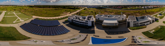 Лабораторія сонячних батарей та сонячних колекторів Лабораторія фотоелектричних панелей та сонячних колекторів присвячена дослідженню окремих фотоелектричних комірок, а також цілих сонячних панелей та сонячних теплових систем (колекторів) за наявності випромінювання, що генерується сонячним тренажером. Сонячний симулятор великої площі - Вічне сонце, є першим подібним тренажером у Польщі та одним із кількох у Європі, який генерує безперервне та однорідне випромінювання, ідентичне природному сонячному спектру. Цей пристрій було визнано у 2015 році журналом PV як найсучасніша фотоелектрична технологія. Ця система дозволяє проводити вимірювання клітин третього покоління, які характеризуються так званим ефектом насичення електричного заряду.