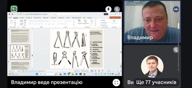 У п'ятницю, 4 квітня 2025 року, на 1 парі (початок о 8:30 год.) доцент кафедри ветеринарної хірургії ім. акад. І.О. Поваженка Ткаченко В.В. прочитав відкриту лекцію з дисципліни «Оперативна хірургія з основами топографічної анатомії, анестезіологія» для студентів 3 курсу (1 потік) ОС «Магістр» спеціальності 211 «Ветеринарна медицина» на тему «Кастрація тварин».